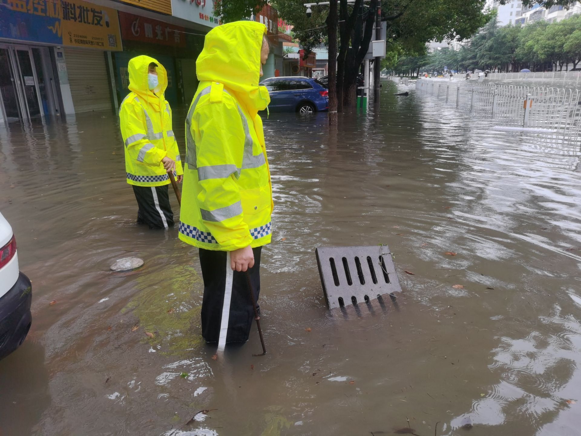 为减少暴雨和渍水对交通带来的不利影响,交警部门除迅速启动应急预案、在渍水严重的路段增派警力外,还通过网络直播,帮助市民了解路况信息。