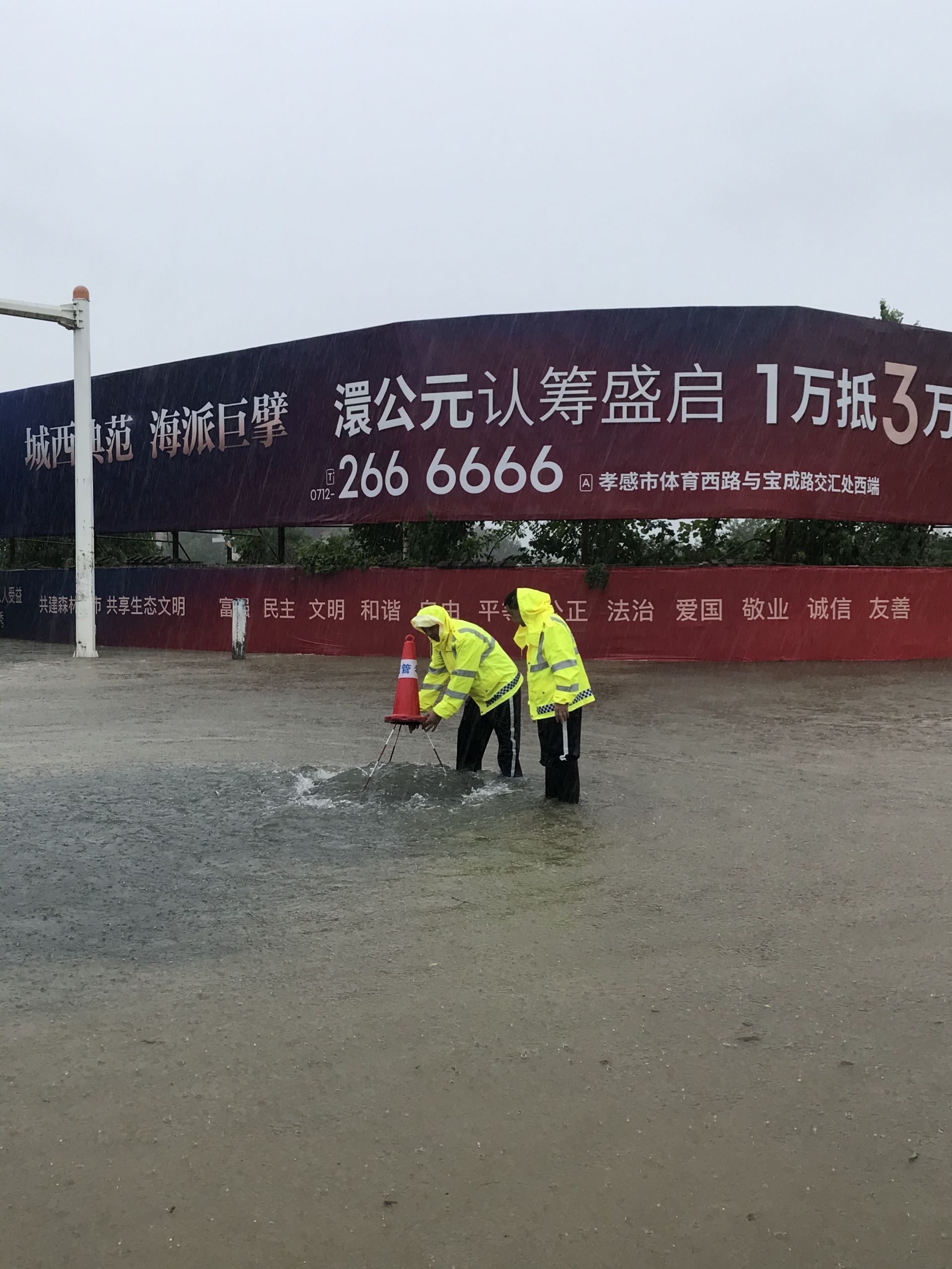 为保证用电安全,国网孝感市开发区供电中心陆续对主城区的商业综合体,物业小区,社区居民进行临时停电。由于短时间无法及时排出积水,很多低洼处内涝严重。在体育西路神水街公用变压器,保电人员淌着齐腰深的水进行了断电操作。