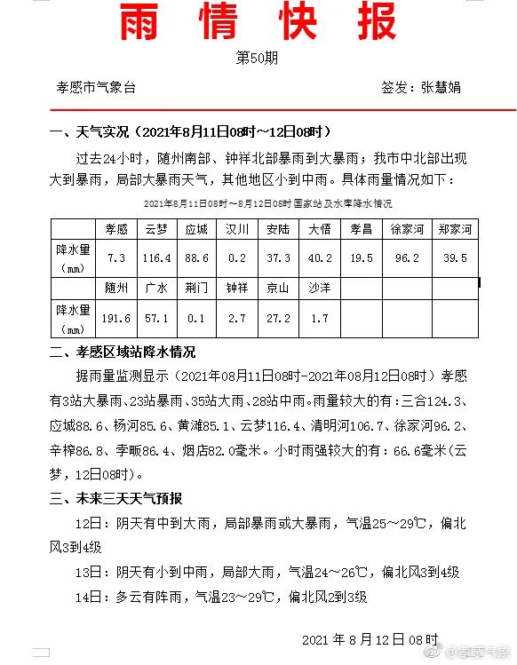 孝感市气象台多次发布