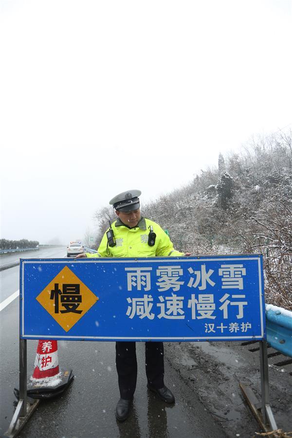 1月26日至27日,因突降大雪,湖北省公安厅高警总队襄州大队辖区福银高速公路交通受阻,通行不畅。襄州大队立即启动恶劣天气应急预案,以雪情为警情,采取多种措施,组织全体民警昼夜奋战抗击冰雪,全力疏导交通,消除安全隐患,确保交通安全。