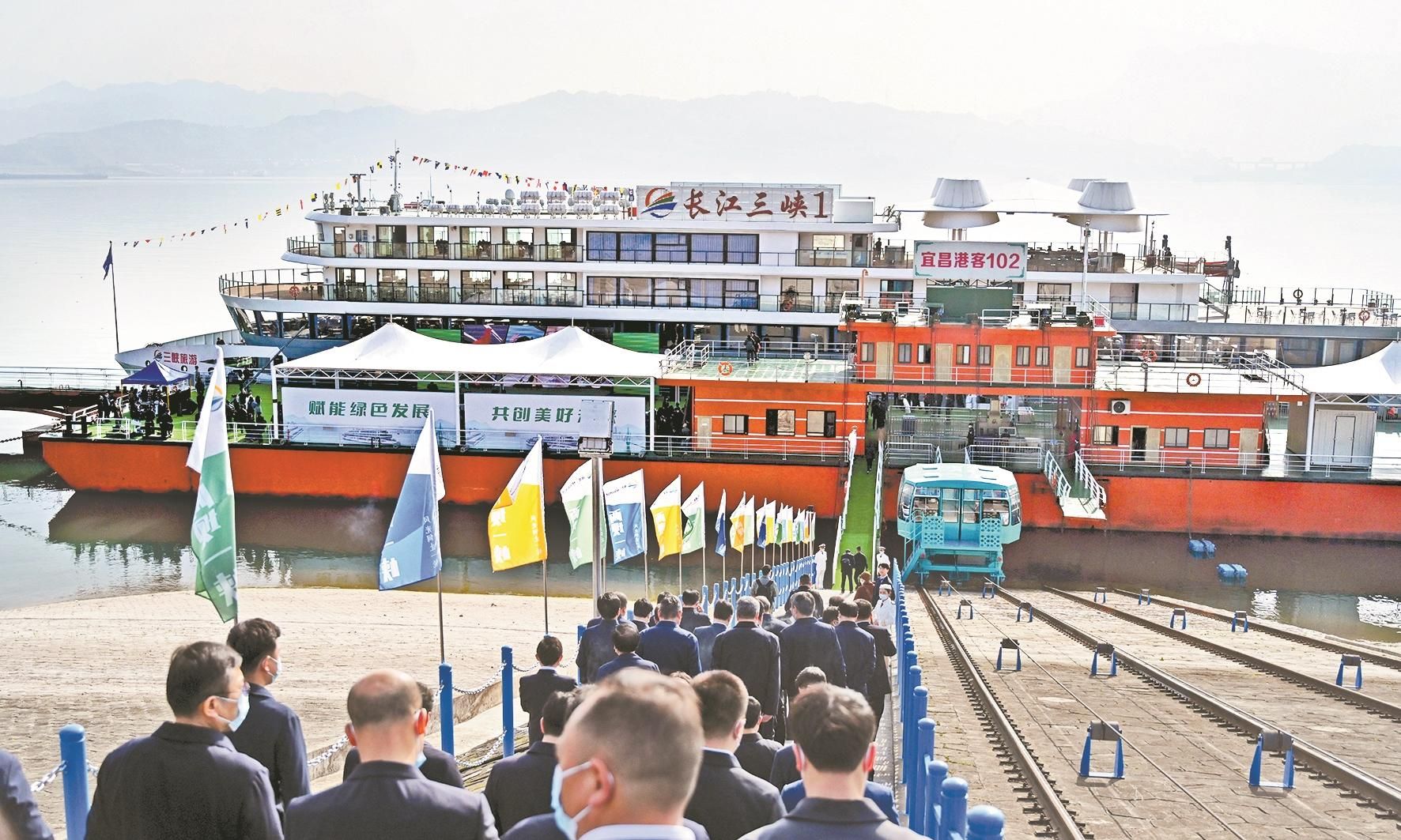 昨日上午9时58分,随着一声船笛鸣响,载电量全球最大、充电技术属世界首创的纯电动游轮——“长江三峡1”缓缓驶离三峡库区秭归新港,经三峡大坝升船机,于12时许抵达三斗坪港,成功完成首航。当天上午,来自全国各地的游客,一起体验了这趟长江的绿色之旅。