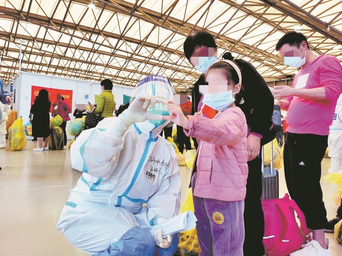 新国博中心W2舱首批出舱的李大爷(化名)临别前,连连对医护人员道谢,“谢谢你们从武汉来支援上海,这段时间你们把我照顾得很好,这几天这么热,穿着防护服很受罪,辛苦你们了!”一旁3岁的女童乐乐(化名)也用她稚嫩的声音,对着医护人员说“谢谢大白”。