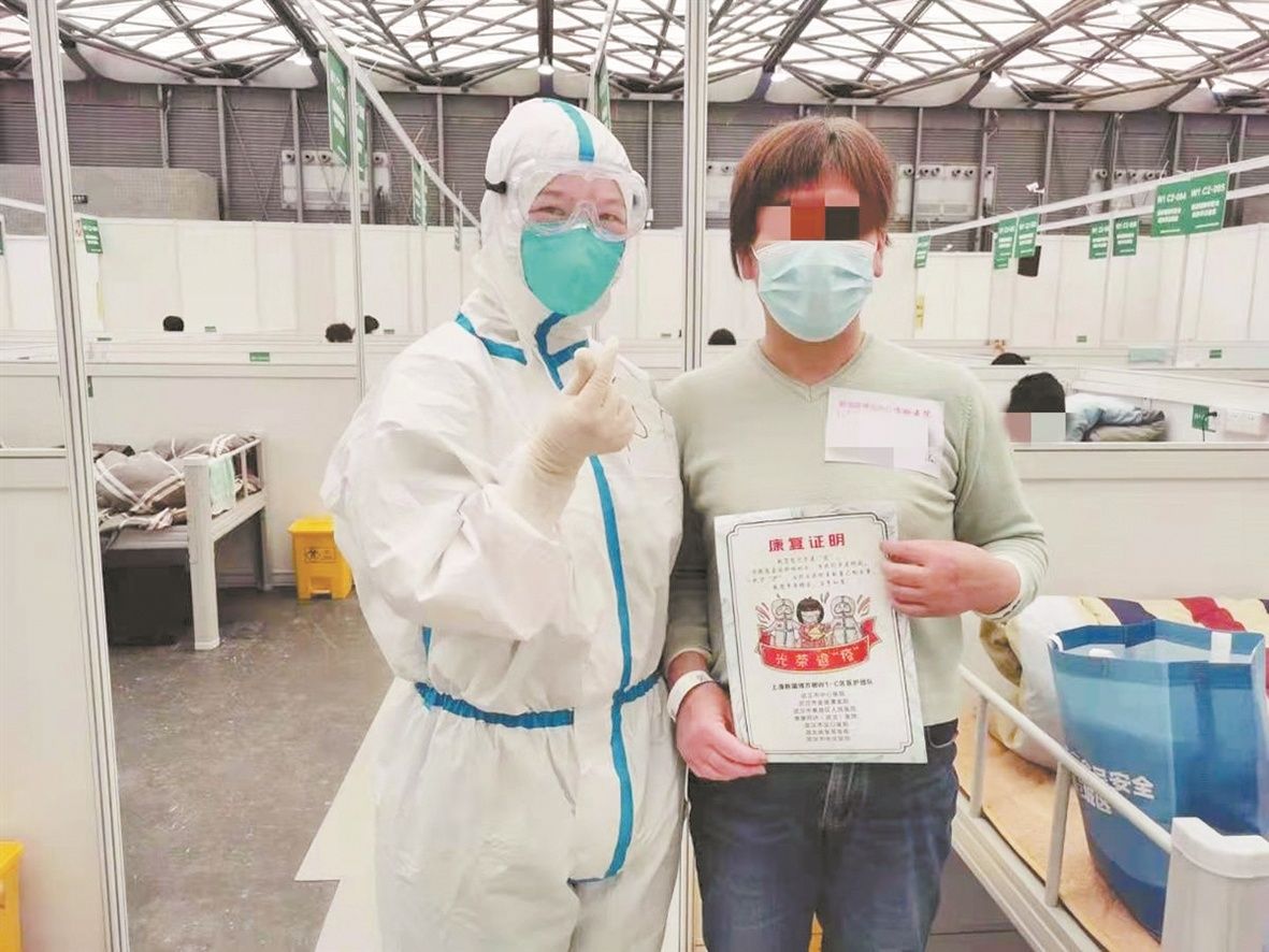 “恭喜你们退‘疫’出舱,感谢你们在舱内这段时间对我们工作的支持与配合,希望你们回家后继续做好健康管理,我们一起为上海加油!”华中科技大学附属同济医院援沪医疗队医务负责人刘顺芳送别出院患者时这样说道。