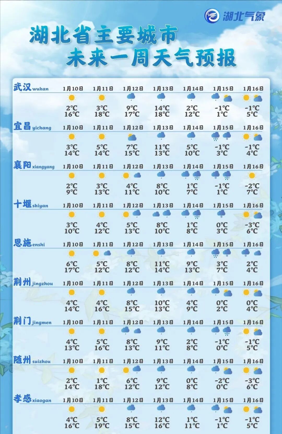 但是降温即将来袭12-13日全省大部地区将有小到中雨14-15日湖北省将有大风降温天气大部地区阵风7~9级降温幅度8~12℃部分地区伴有雨雪天气