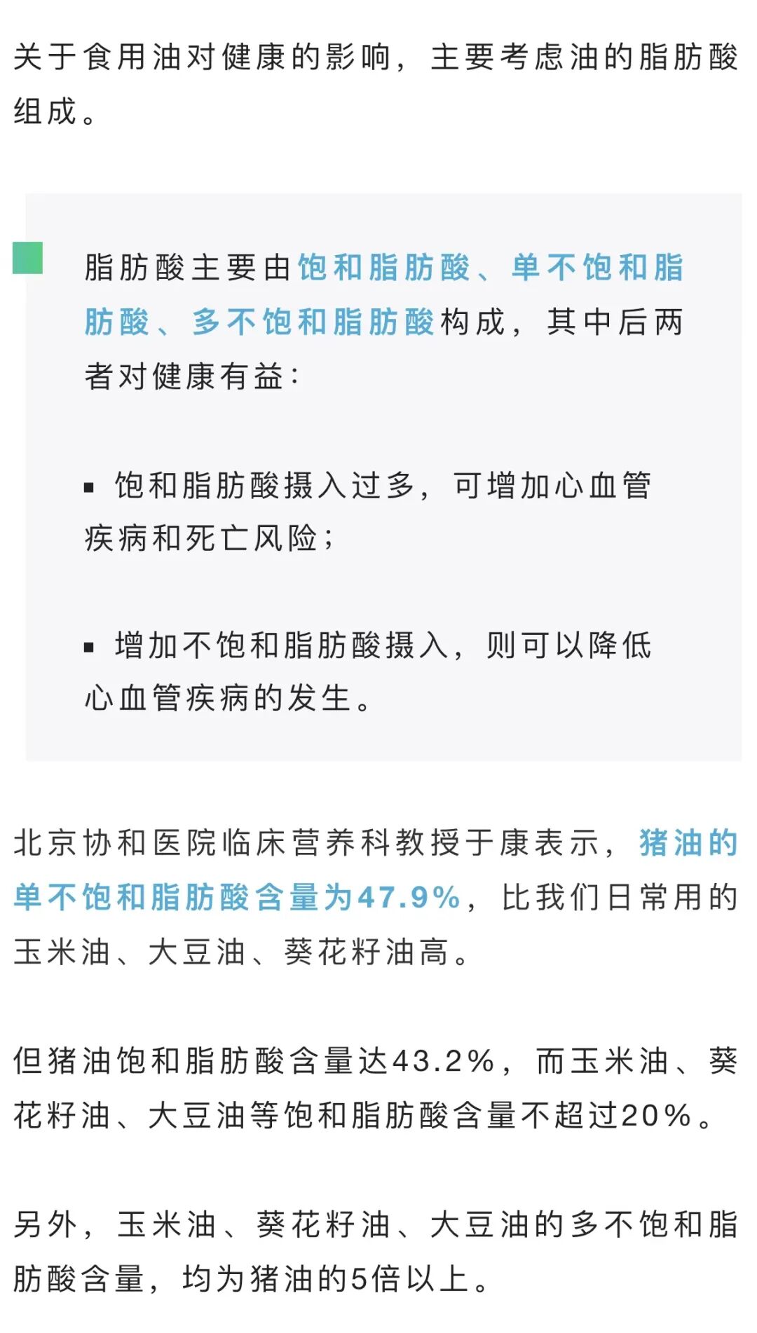 综合来看,还是少吃猪油更健康一些。但少吃一点解解馋也没有什么大问题。
