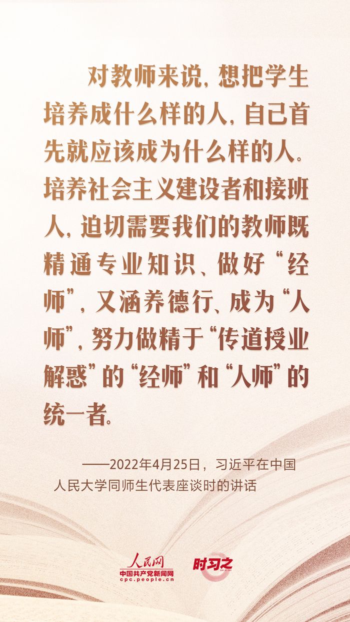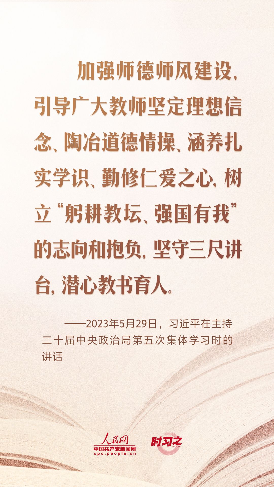 百年大计,教育为本。教师是立教之本、兴教之源,承担着让每个孩子健康成长、办好人民满意教育的重任。一直以来,习近平总书记高度重视教师队伍建设,多次在不同场合强调教师工作的意义,对广大教师提出殷切期望。 (来源:人民网 编辑:汤静)
