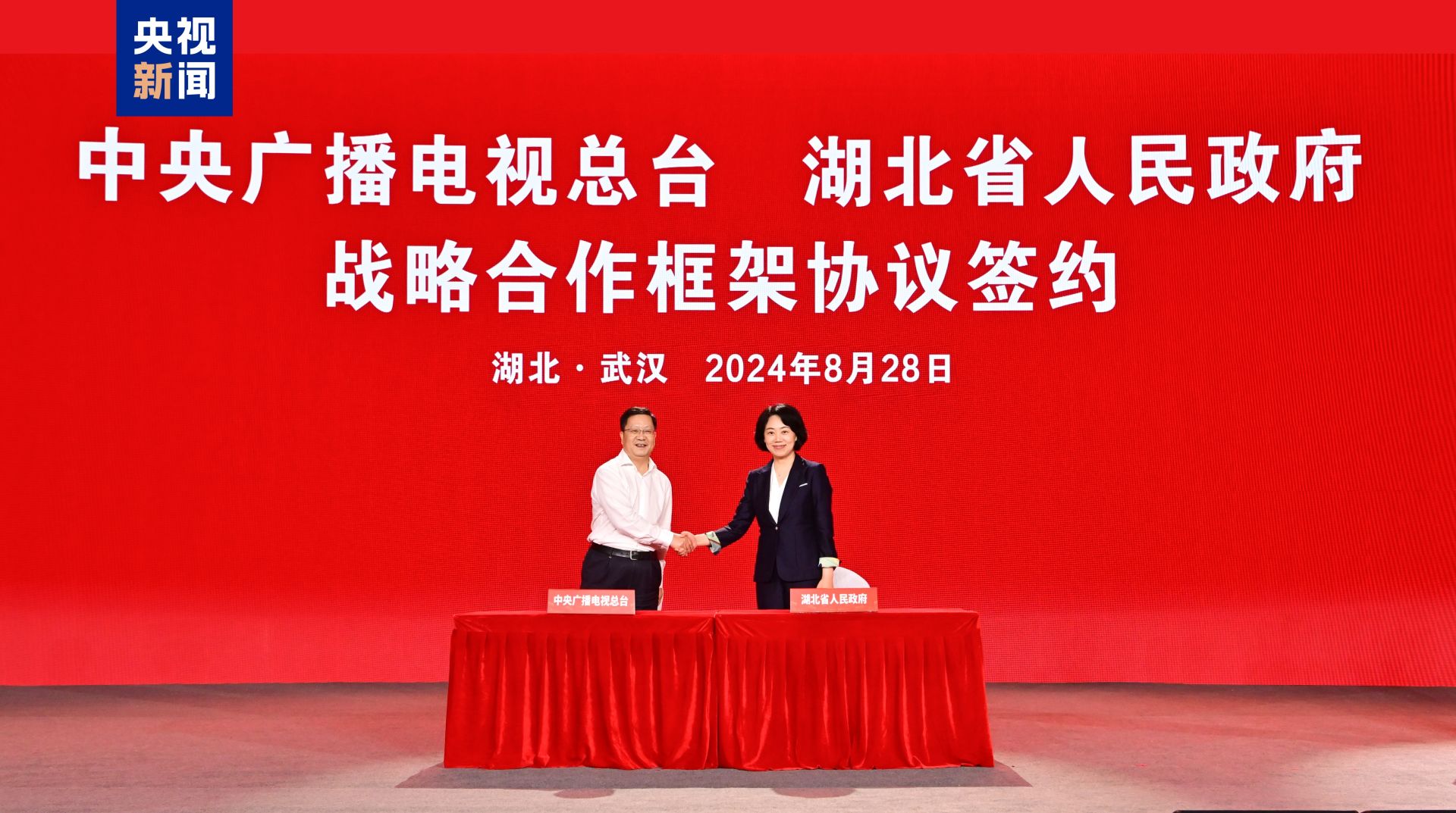 8月28日,中央广播电视总台与湖北省人民政府举行战略合作框架协议签约活动,中央广播电视总台湖北总站同时揭牌运行。