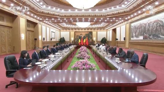 9月3日上午,国家主席习近平在北京人民大会堂会见来华出席中非合作论坛北京峰会的肯尼亚总统鲁托。新华社记者 翟健岚 摄