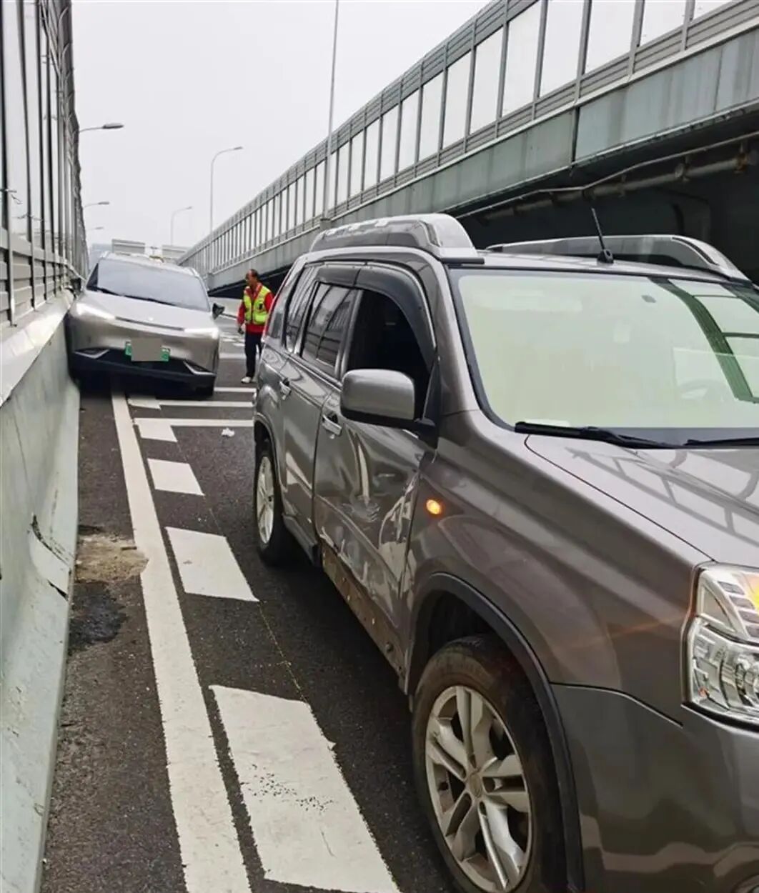 约几秒后,这辆新能源汽车突然加速,冲向下桥匝道的右侧护栏,接着就紧贴着右侧护栏向下行驶。“我老公赶紧刹车,我吓了一大跳。”同行的李女士说道。随即,她叮嘱丈夫开慢点,仔细观察路况。