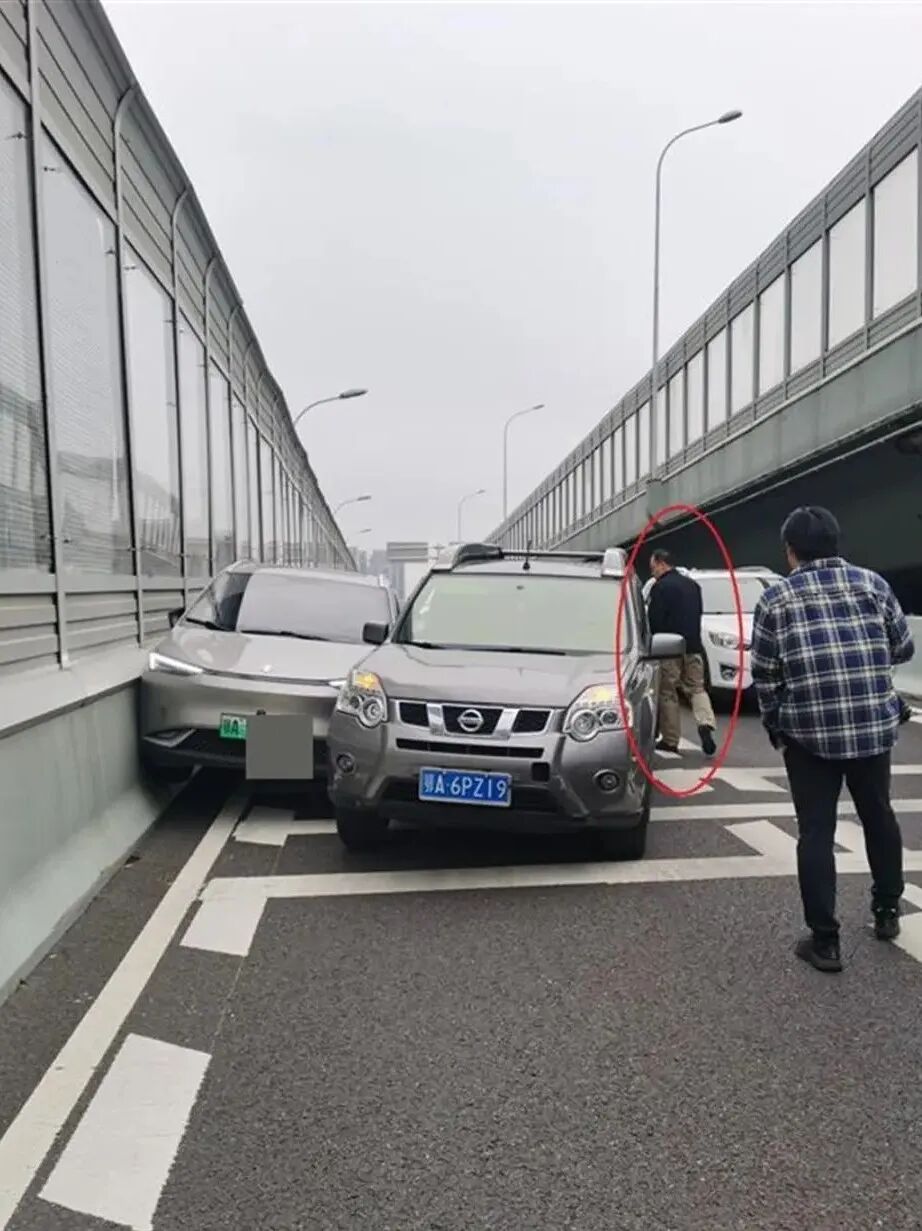 事发地位于武汉市东湖高新区光谷高架靠近当代国际花园小区的一处下桥匝道。10月20日下午4时21分许,市民刘新驾车载着妻子李女士回家,突然发现前方一辆新能源汽车停在岔路口不动,路过车辆纷纷避让。“我们最开始以为这名司机可能是不认识路,正在犹豫下不下匝道。”刘先生介绍。