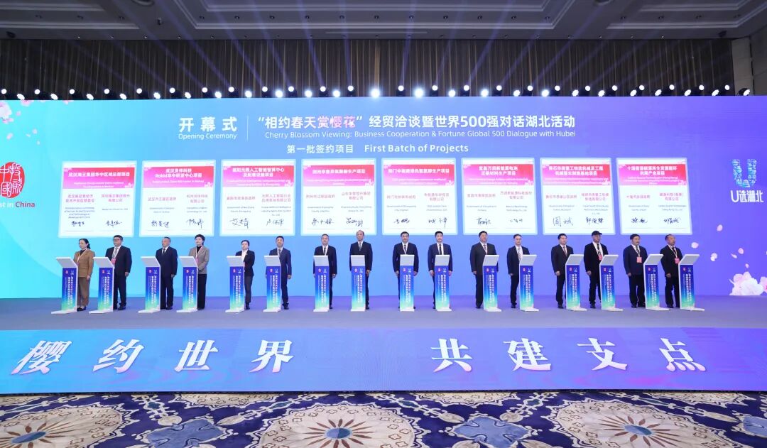 活动现场,王忠林、李殿勋、祁斌、唐文弘共同推杆启动2025“相约春天赏樱花”经贸洽谈暨世界500强对话湖北活动。