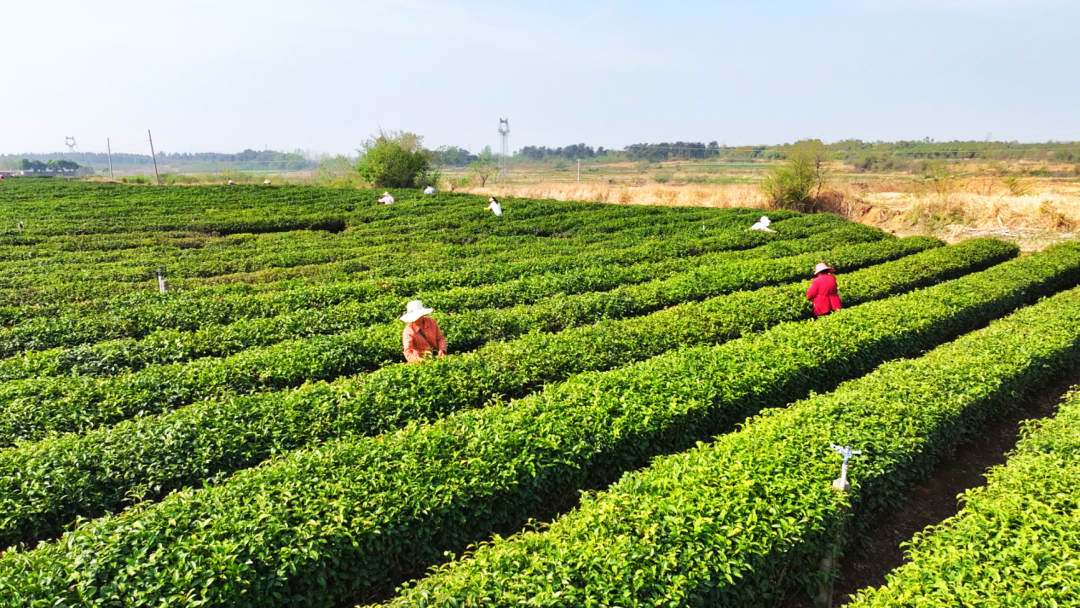 在孝昌县邹岗镇三合村的茶园里,头戴草帽、腰挎竹篓的采茶工们,手指轻捻,将嫩绿的一芽一叶采摘下来,收入篓中,一片繁忙景象。
