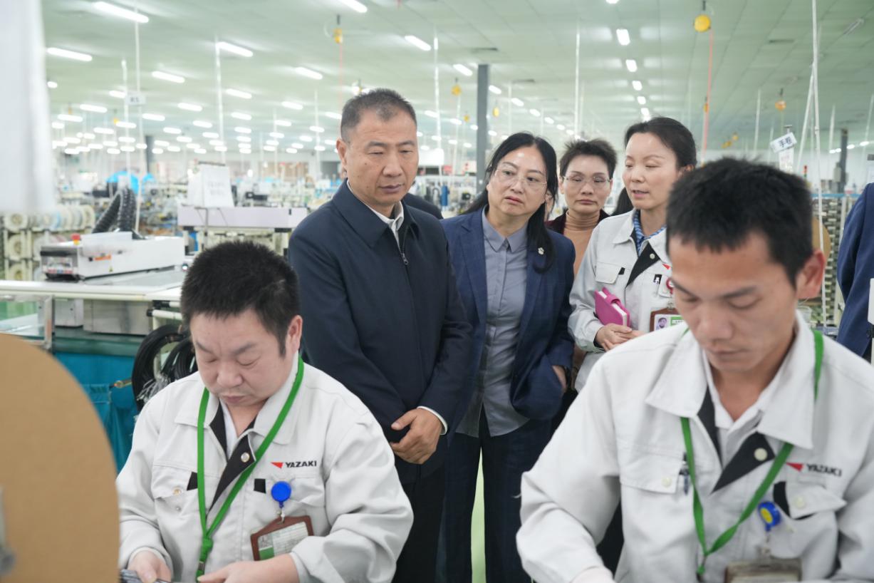图为省残联党组成员、副理事长毛建东在孝感市矢崎汽车部件有限公司调研