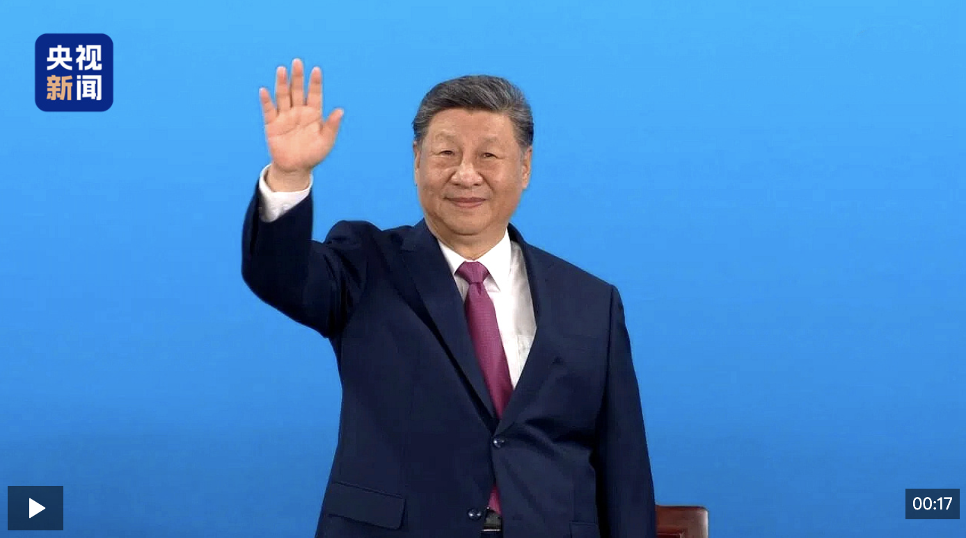 11月9日晚,中共中央总书记、国家主席、中央军委主席习近平在广东省广州市出席中华人民共和国第十五届运动会开幕式并宣布运动会开幕。这是习近平在主席台上向大家挥手致意。新华社记者 燕雁 摄