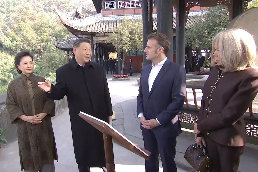 12月5日,国家主席习近平在四川省成都市都江堰同法国总统马克龙进行友好交流。