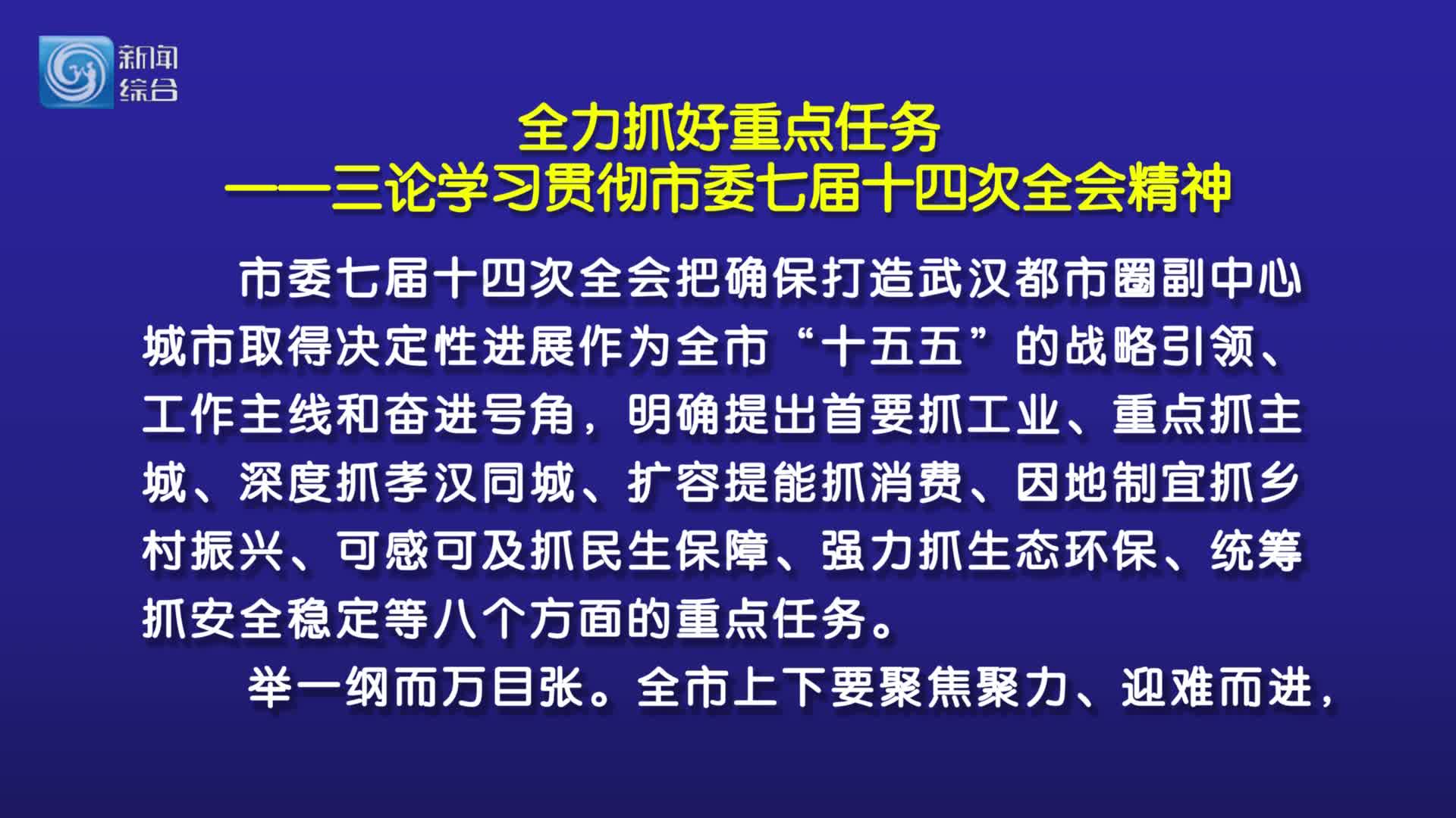 市委七届十四次全会把确保打造武汉都市圈副中心城市取得决定性进展作为全市“十五五”的战略引领、工作主线和奋进号角,明确提出首要抓工业、重点抓主城、深度抓孝汉同城、扩容提能抓消费、因地制宜抓乡村振兴、可感可及抓民生保障、强力抓生态环保、统筹抓安全稳定等八个方面的重点任务。