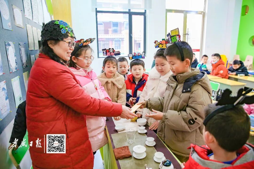 市高新区丹阳办事处东(西)杨社区的小朋友在社区活动室里学习中国传统茶艺。全媒体记者吴垠 通讯员徐婷 摄