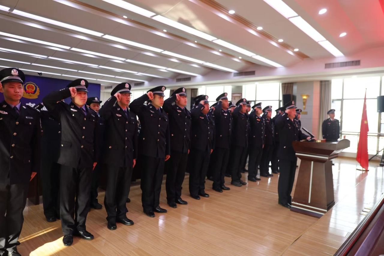 活动在雄壮的《中华人民共和国国歌》声中拉开帷幕。全体民警警容严整、精神抖擞,面向鲜艳的五星红旗庄严敬礼。在随后的宪法宣誓环节,党委书记、监狱长孙昌盛监誓,党委副书记、政委王红斌领誓,全体民警高举右拳,齐声宣誓:“我宣誓,忠于中华人民共和国宪法,维护宪法权威……”铮铮誓言铿锵有力,彰显着监狱民警坚守法治信仰、践行执法为民的坚定决心。