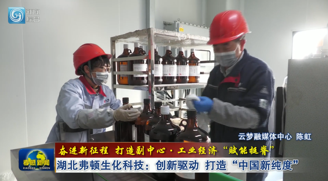 高纯溶剂是环境检测、生物工程、生命科学、制药、食品、电子等高端制造业和科研领域的关键基础材料。在湖北弗顿生化科技生产车间,16条多品种系列高纯溶剂生产线高效运转,工人们分工协作、熟练操作,瓶身清洁、密封加固等工序有序推进,一批批合格产品整齐堆放、即将发往全国各地。