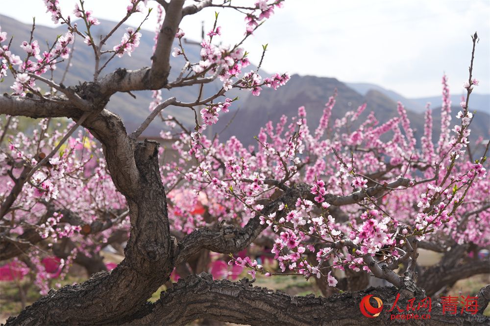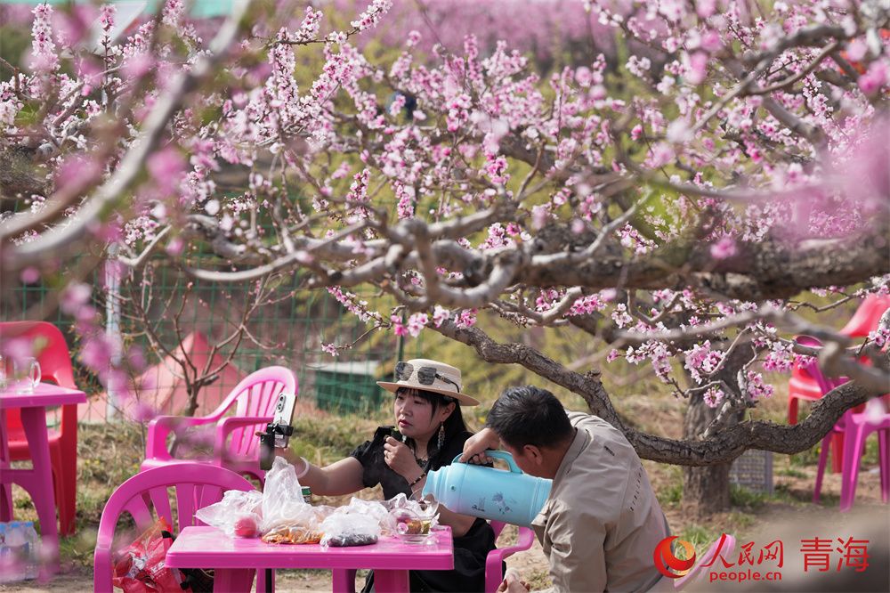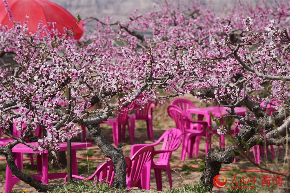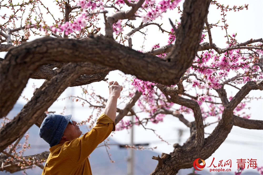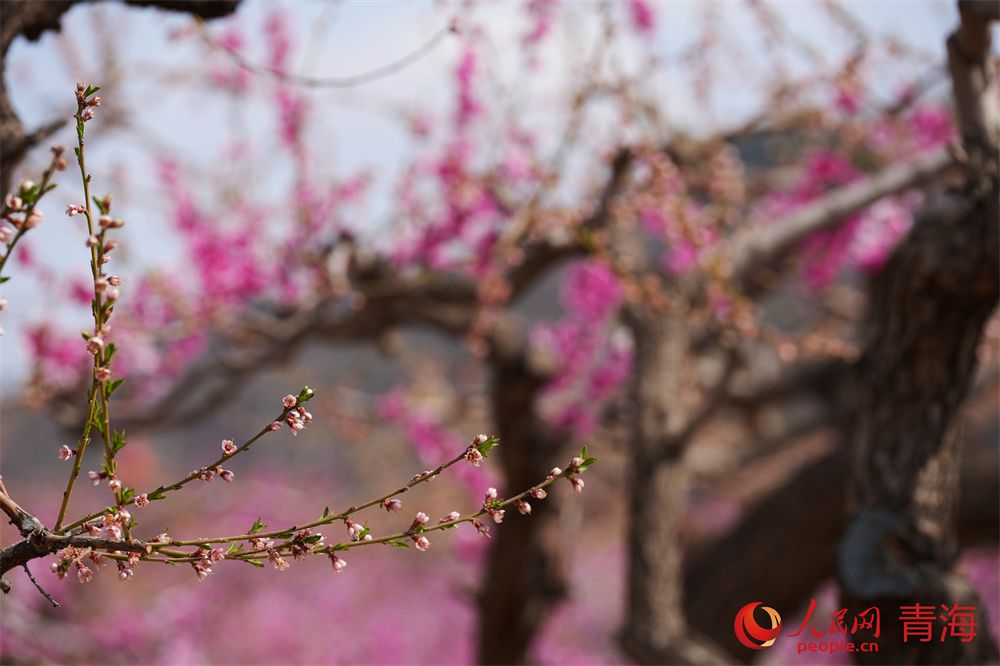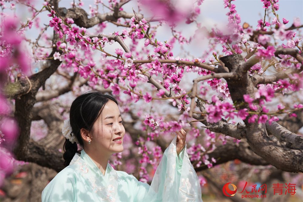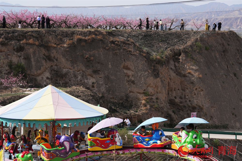 人民网民和4月16日电 (顾斐菲)人间四月芳菲尽,高原春桃始盛开。和煦春风拂过河湟谷地,青海省海东市民和县马场垣乡下川口村千亩桃林繁花似锦,桃花源景区内游人如织,共赴一场春日浪漫之约。