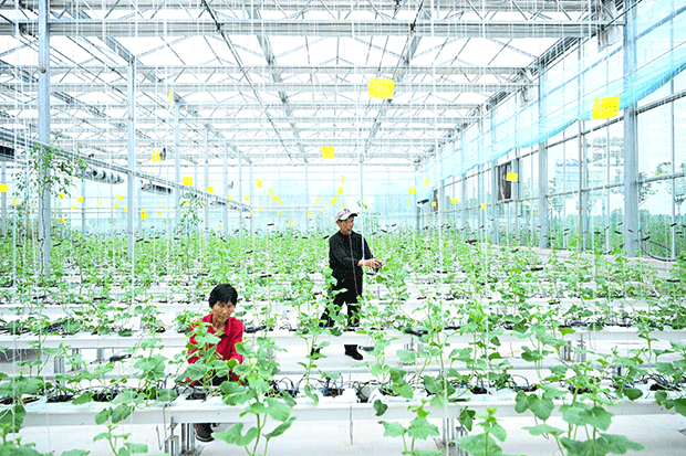 4月13日,在云梦县义堂镇森工产业园的湖北华南木业股份有限公司生产车间,工人正在生产装饰面板。