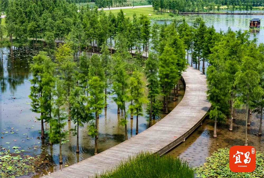 谁能想到,几年前这里还是一片荒岛,杂草丛生、湖岸凋敝。如今却蜕变为城市“绿心”——水清岸绿、设施齐全,成为猇亭人家门口的“天然氧吧”。