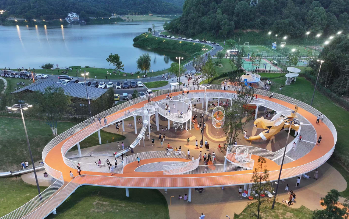 生态理念的传递,早已融入公园的每一处设计细节。去年11月,金猇城发集团在原有旱地儿童乐园的基础上,于湖的北岸建起一座水主题互动儿童乐园——江豚乐园,连贯的滨湖步道与阳光草坪犹如一条条连接不同功能的纽带,生态铺装与自然景观巧妙结合、相互映衬。