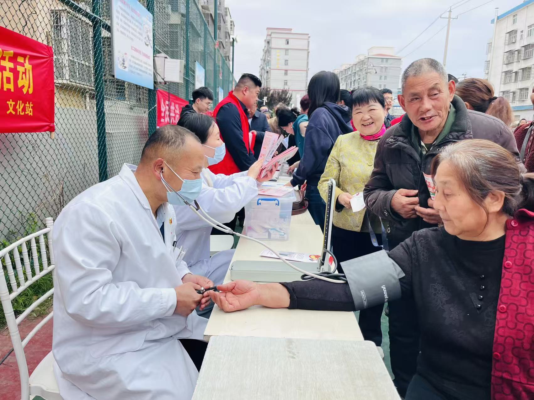 舞台一侧,义诊、义剪等志愿服务摊位前排起长队。镇卫生院的医生耐心为老人量血压、测血糖,解答健康疑问;爱心理发师手法娴熟,为留守老人和儿童免费理发。另一侧,法治宣传展台通过发放手册、案例讲解等形式普及民法典、防诈骗等法律知识;市博物馆带来的“流动博物展”让村民在家门口就能了解本土历史文化;夜幕降临后,广场上还播放了红色电影,吸引大批群众驻足观看。“又能看戏,又能看病,还能学知识,今天这个活动真周到!”村民李大爷竖起大拇指。