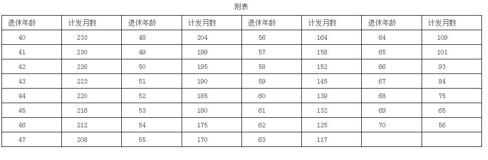 (2)个人账户养老金月标准为个人账户储存额除以计发月数,计发月数按国家规定执行(见附表)。