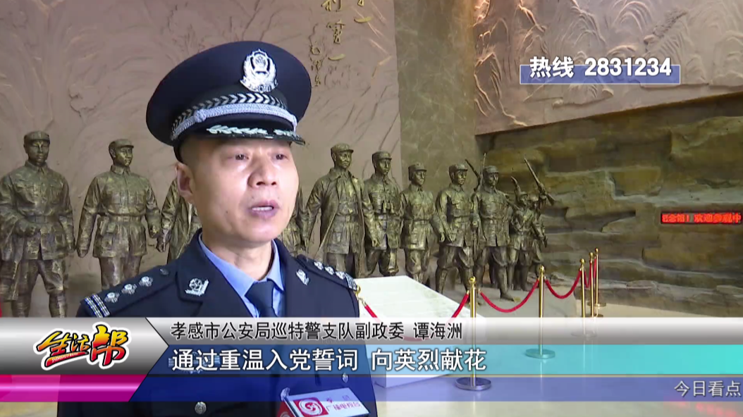 参观后,全体党员民警代表又来到大悟县革命烈士陵园,向英雄纪念碑敬献花篮,并庄严地举起右拳宣誓,重温人民警察入警誓词。通过此次革命传统教育活动,使全体党员民警代表深切感受到中国共产党的初心使命,继承发扬革命先烈的优良传统,弘扬崇高的爱国精神,对党忠诚、服务人民,以实际行动向中国共产党成立100周年献礼。