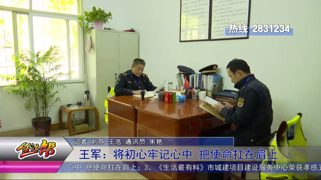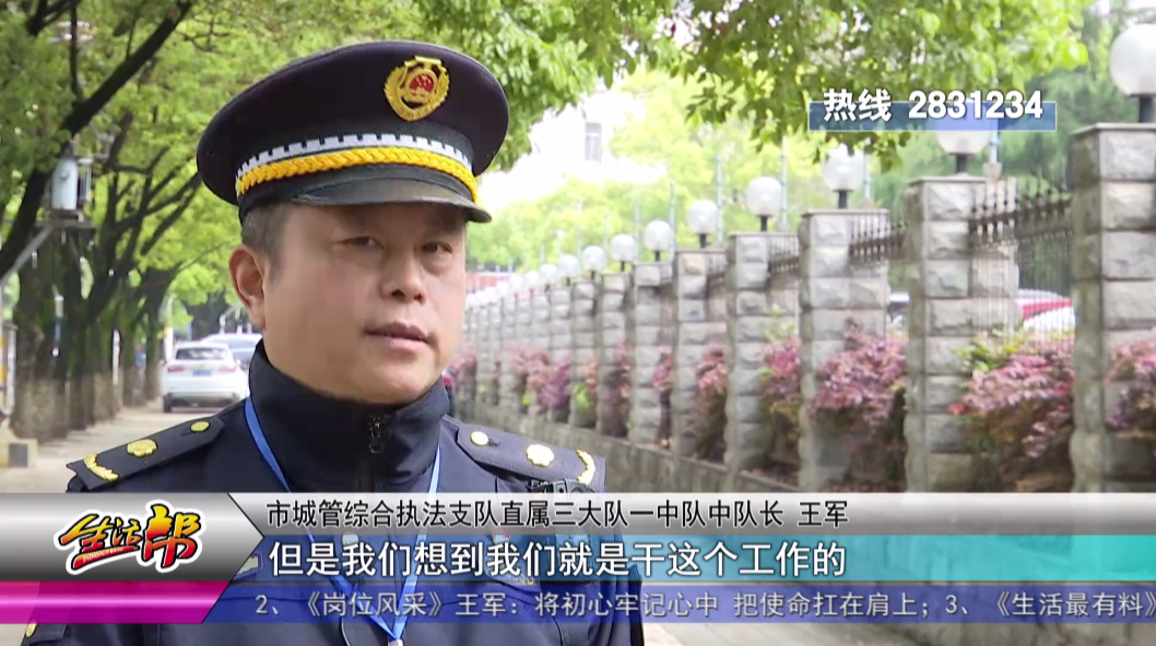 在城管的工作岗位上,王军已经干了10多年,2017年自担任中队长以来,工作更忙了,几乎没有休过年假的他,始终发挥着一名共产党员的先锋模范作用,带领队员们穿梭在大街小巷,为户外广告的规范安全设置贡献自己的力量。
