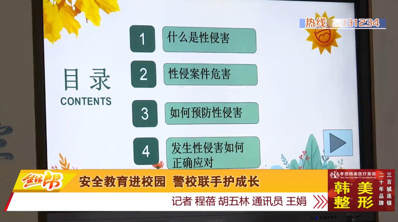 活动当天,来自孝感市公安局刑侦支队的张晶晶警官结合青春期女生的生理和心理特点,详细讲解了性侵害的方式、场所、诱因和应注意的安全问题以及如何自我保护等多个方面的内容,结合真实案例、播放视频、互动等形式,告诉同学们如何远离危险、巧妙求救,以及遭遇到性侵害时如何正确应对。提高了同学们的安全意识和应急能力。