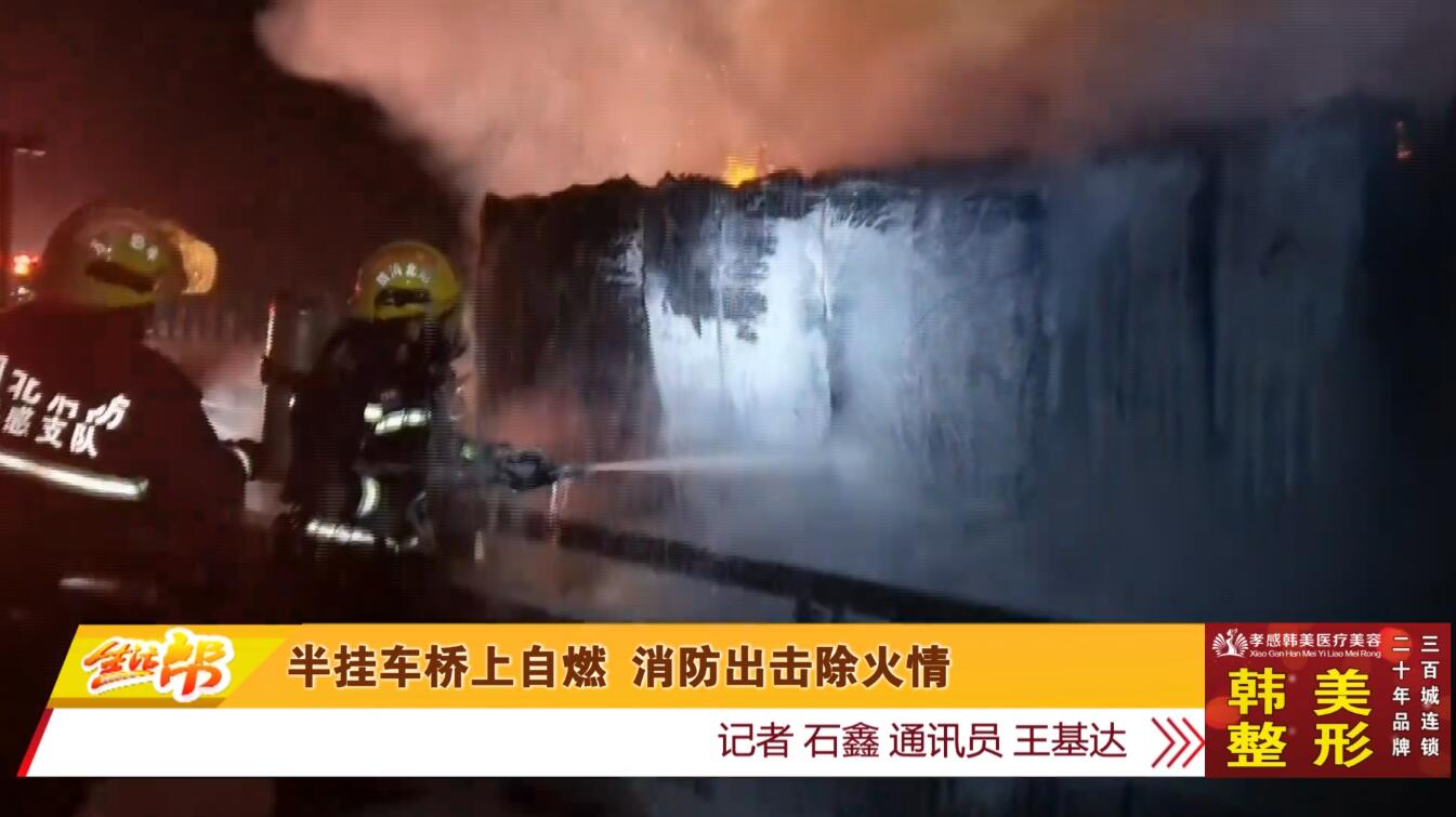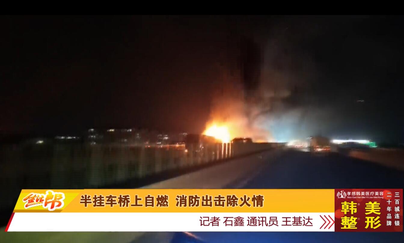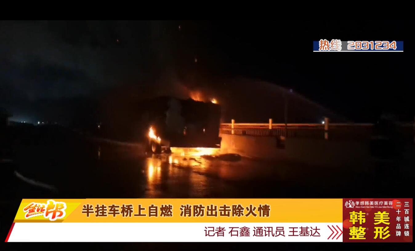 近日,一辆半挂车行驶到孝南区东山头八一大桥时,轮胎突然起火。孝感市消防救援支队福广路特勤站立即出动3辆消防车13名消防员,赶赴现场实施处置。