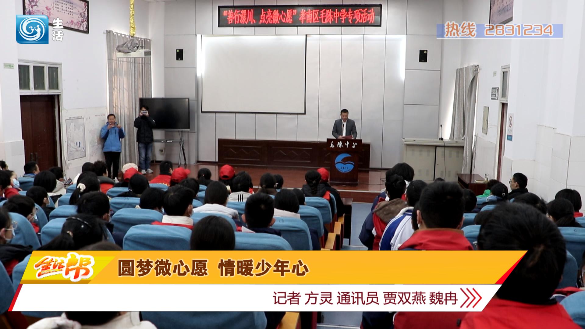 1 月 23 日,孝南区社会救助中心、孝南区益邦社会工作服务中心携手爱心企业到孝南区毛陈镇初级中学,开展 “善行澴川、点亮微心愿” 活动,为108名困境少年送上了他们心仪的“微心愿”礼物。