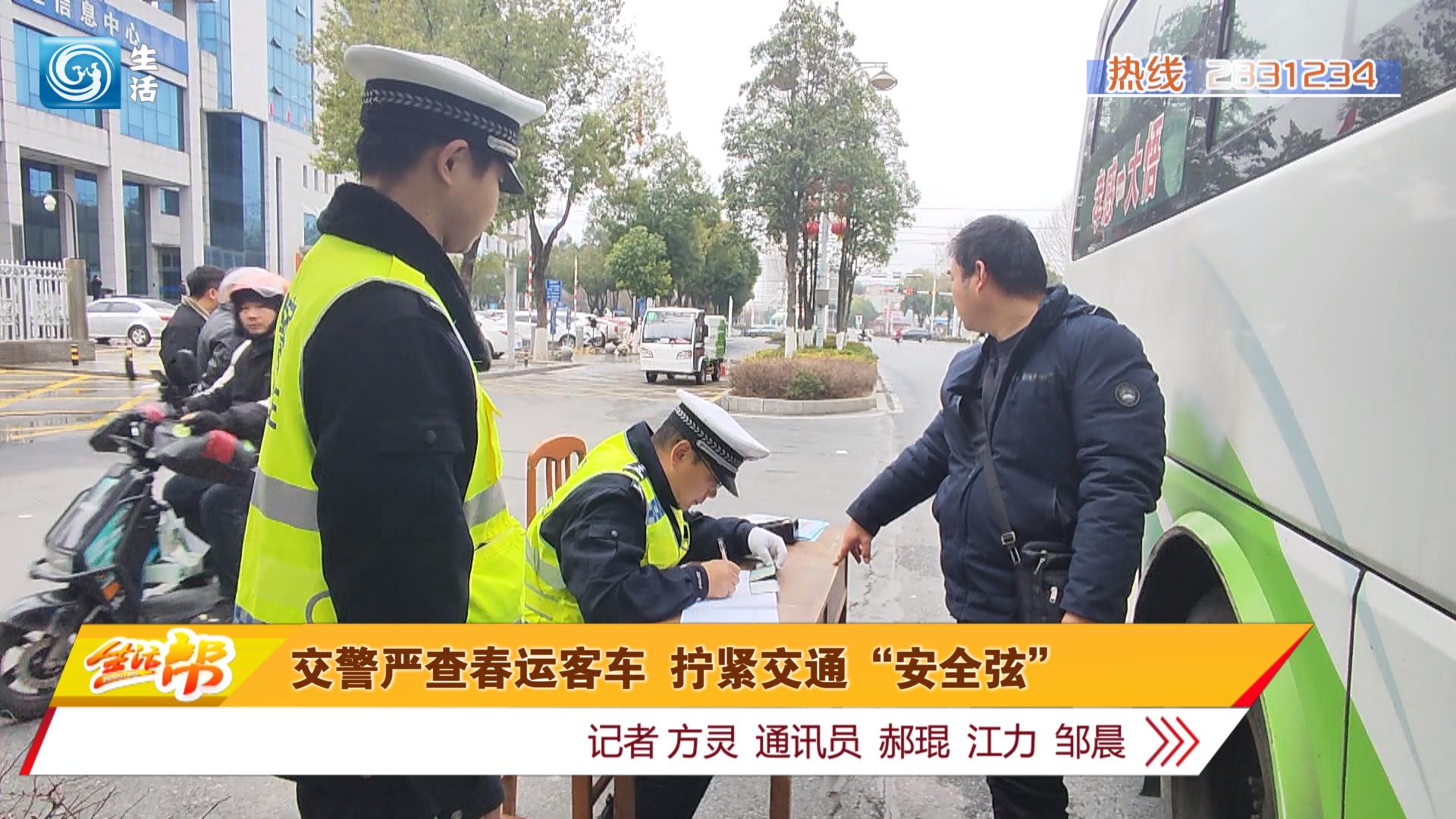 春运期间,全市交管部门实施“定点检查+流动巡查”相结合方式,深入客运站及重点客运企业,结合典型事故案例,督促驾驶员严格落实安全主体责任,杜绝“带病车辆”上路营运、严禁“三超一疲劳”等重点交通违法行为,教育驾驶人要自觉遵守交通法规,提醒乘客拒绝乘坐超员车、无牌车,绷紧春运交通安全弦。